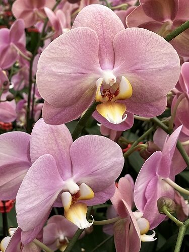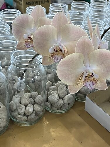 確かに、近年花束やアレンジメントの中でミディ系*のファレノの切り花をよく見るようになりました。
