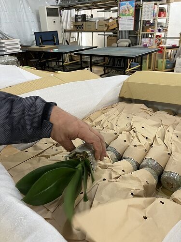 梱包前のファレノを管理する上での加藤さん考案のなるほどな工夫なのでした。
