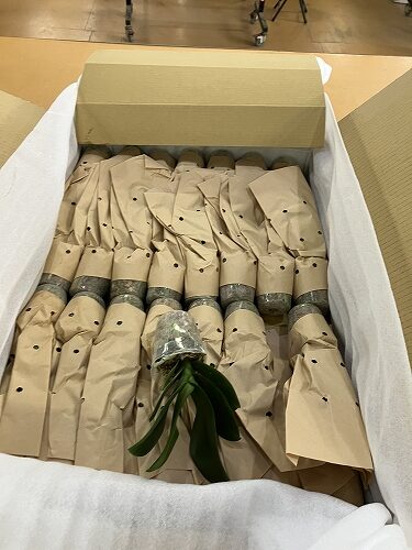 どのような荷物でも注文したものが届いて開梱する瞬間てわくわくします!切花ファレノ用の苗がどんな感じで届くのでしょうか。