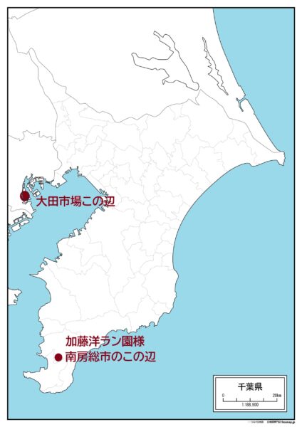 千葉県南房総市(館山市との境くらいのところで、自動車で所要時間片道2時間くらい)