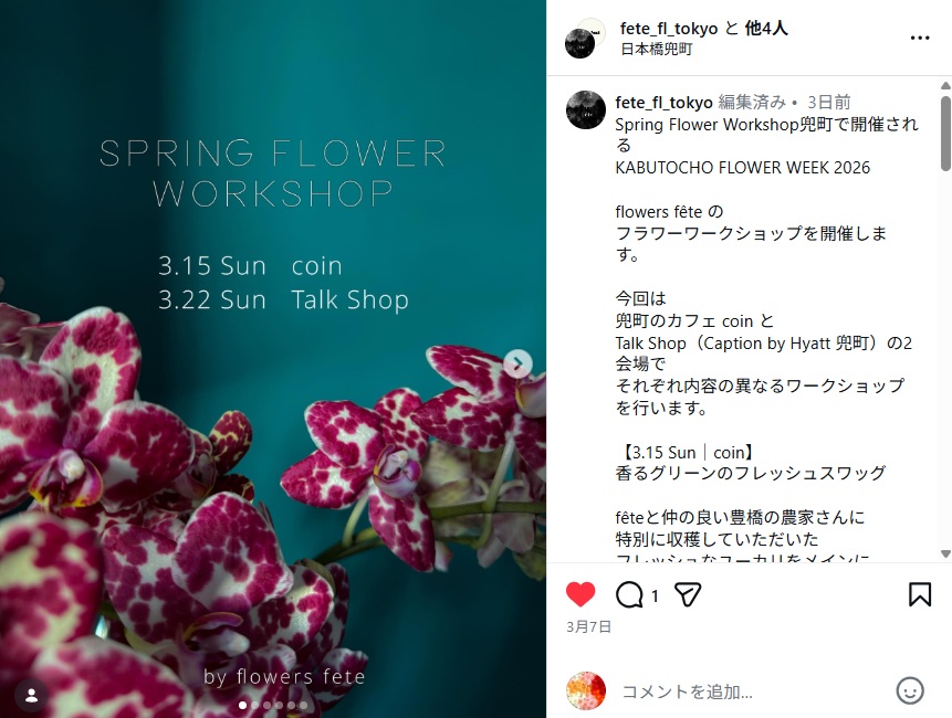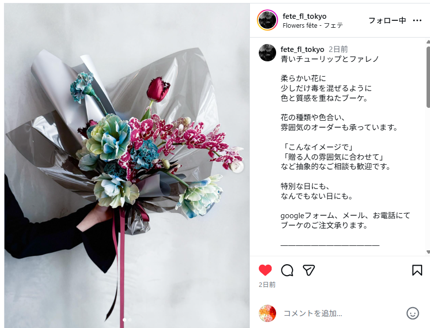 fête(フェテ)さん(東京都中央区日本橋兜町)のインスタグラムより↓クリックでインスタにリンク