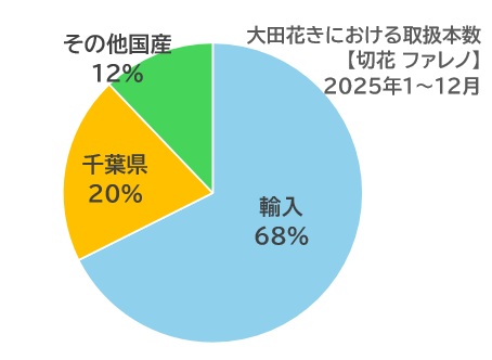 そのファレノの出荷は下のグラフが示すように、およそ7割が輸入、3割が国産。